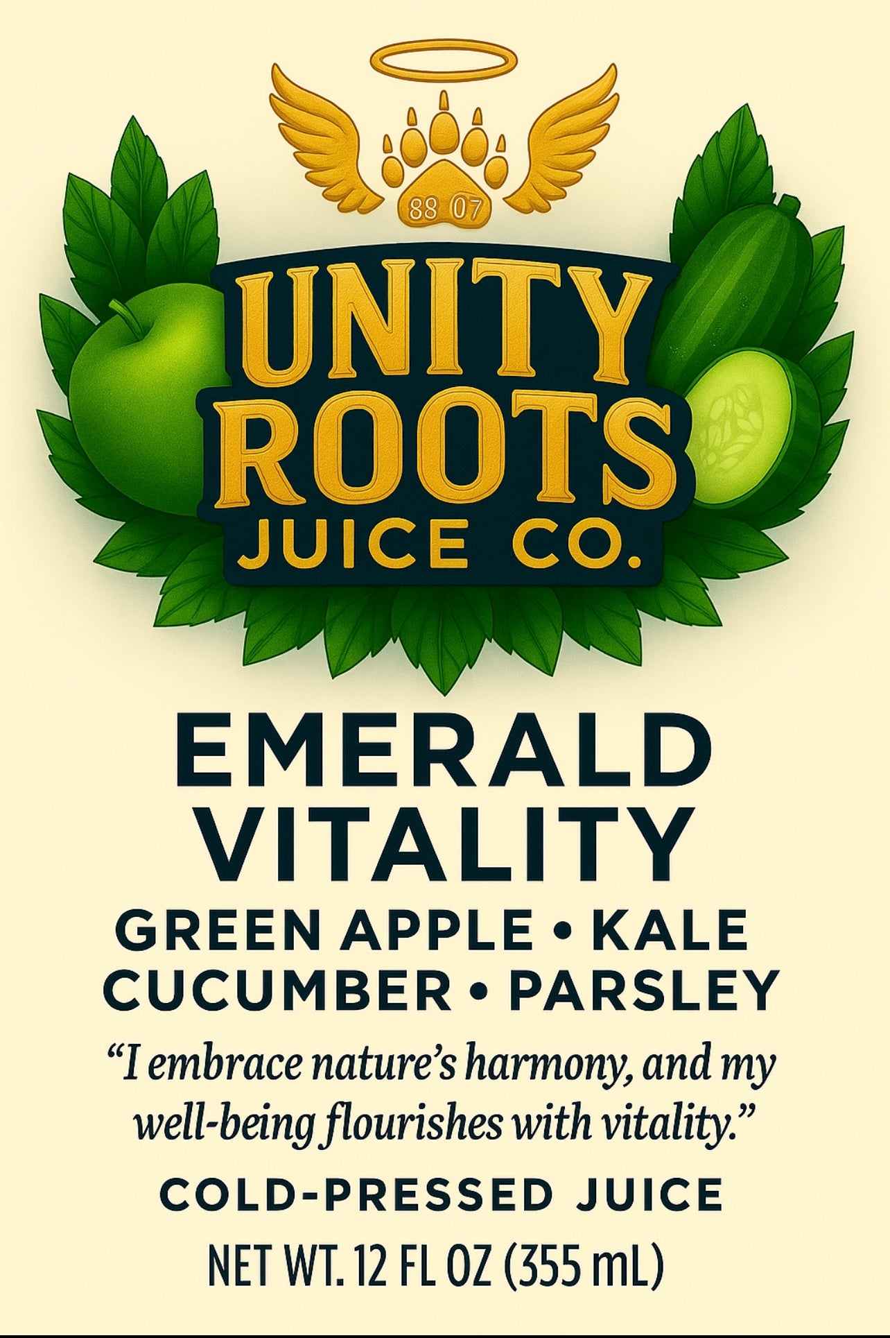 Emerald Vitality – Kale • Green Apple • Cucumber • Parsley • Cilantro • Lemon • Ginger • Full Spectrum Sea Moss